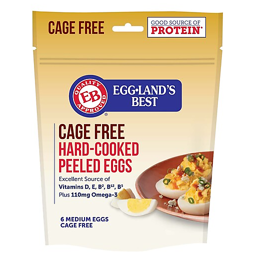BETTER TASTE. BETTER NUTRITION. BETTER EGGS.® Egglands Best Hard Cooked Peeled Eggs make snacking on the go more nutritious and delicious with farm fresh taste that's packed with protein! Our award-winning eggs are an excellent source of vitamins and folate with added nutrition as compared to ordinary eggs. We do things with a health-driven purpose from the very start. Our hens enjoy a wholesome, all-vegetarian diet with no animal by-products, recycled or processed foods, hormones, steroids or antibiotics of any kind, which means more nutritious and better tasting eggs that are proven to stay fresher longer than other eggs. Every bite has vitamins and minerals that help support your nutritious diet. We conduct more than 75,000 tests each year, and created the most rigorous egg quality assurance program in the industry. When you're short on time, but don't want to skimp on nutrition or taste, we make it easy to treat yourself to something special any time with a resealable pouch that keeps eggs fresh. Sprinkle on some salt and pepper for a delicious, protein-rich snack, or slice them up and top your avocado toast or cobb salad. Or be everyone's favorite guest with a flavorful deviled egg or potato salad that's the hit of the party. Take a quick break from the ordinary and simply enjoy - no effort required!