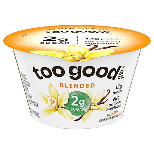 Too Good & Co. Blended Vanilla Yogurt-Cultured Ultra-Filtered Low Fat Milk Cups are made with low fat ultra-filtered milk and are delightfully satisfying with 80 calories, 2g total sugar, no artificial sweeteners and 12g protein. These snack cups make a great addition to your breakfast and a delightful afternoon snack. Grab a pack for on the go snacks or pack a snack cup for a tasty pick-me-up whenever you need it. Grab a cup and make it a good one with Too Good & Co. Yogurt-Cultured Ultra-Filtered Low Fat Milk snack cups.