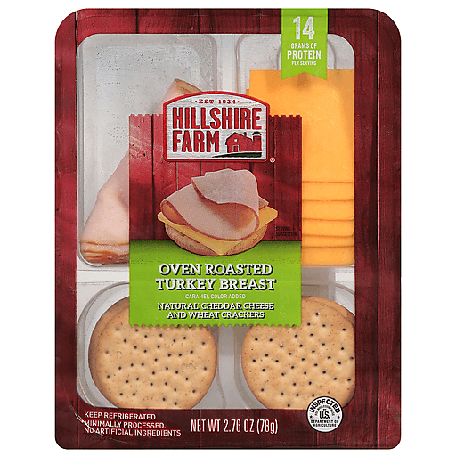 Elevate snack time and help fuel your busy day. Our Hillshire Farm Snack Kit contains high-quality Hillshire Farm oven roasted turkey breast slices, all-natural cheddar cheese and wheat crackers. Ideal as a snack or part of a meal, they are ready to eat right from the refrigerator. Each package contains 14 grams of protein for a filling, protein-packed snack. Great for on-the-go snacking, they are perfect for busy days, traveling, after a workout or any time you crave a quick and easy bite to eat. Keep our 2.76 oz single serve pack refrigerated until you're ready to enjoy.