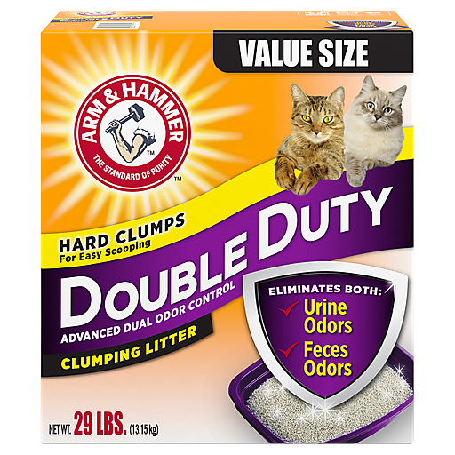 ARM & HAMMER™ Double Duty Clumping Litter eliminates both types of odors for Advanced Odor Control. Its breakthrough cat litter formula destroys urine AND feces odors on contact, and helps keep your home smelling fresh and clean with a fresh scent. ARM & HAMMER™ Cat Litter is made with odor absorbing clay and ARM & HAMMER™ Baking Soda in every scoop to neutralize litter box odor. Rock-solid clumps let you remove the source of odors easily and fresh scent refreshed litter every time your cat uses the kitty litter box. And that’s why an odor-free home starts with ARM & HAMMER™ clumping cat litter. Plus, with low tracking and 99.9% dust-free formula pour ARM & HAMMER™ kitty litter with confidence.